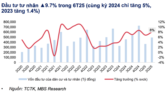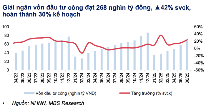 “Chúng tôi kỳ vọng tiến độ giải ngân sẽ được tăng tốc trong phần còn lại của năm 2025, qua đó trở thành yếu tố then chốt để đạt mục tiêu tăng trưởng GDP 8%”, MBS nhận định.